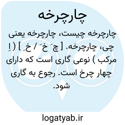 لغت نامه دهخدا چارچرخه. [ چ َ خ َ / خ ِ ] ( اِ مرکب ) نوعی گاری است که دارای چهار چرخ است. رجوع به گاری شود.