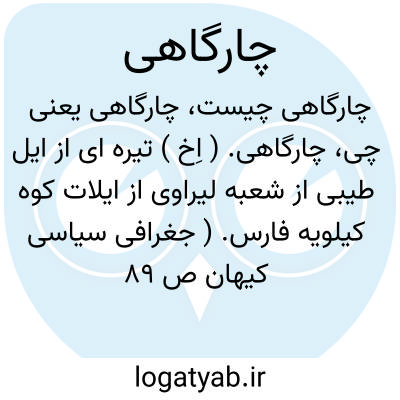 لغت نامه دهخدا چارگاهی. ( اِخ ) تیره ای از ایل طیبی از شعبه لیراوی از ایلات کوه کیلویه فارس. ( جغرافی سیاسی کیهان ص 89 ).