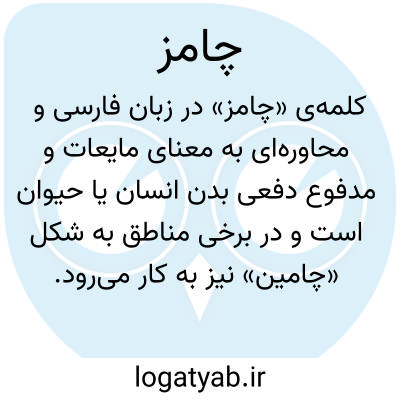 کلمه‌ی «چامز» در زبان فارسی و محاوره‌ای به معنای مایعات و مدفوع دفعی بدن انسان یا حیوان است و در برخی مناطق به شکل «چامین» نیز به کار می‌رود. این واژه معمولاً در گفتار غیررسمی و محاوره‌ای کاربرد دارد و برای اشاره به ادرار، پیشاب، غایط یا سرگین استفاده می‌شود. «چامز» می‌تواند به مایعات دفعی مانند ادرار و پیشاب انسان یا حیوان، یا به مدفوع و آلاینده‌های جامد بدن اشاره کند. همچنین این کلمه گاهی در متون قدیمی یا ضرب‌المثل‌ها برای اشاره به نجاست و آلودگی‌های انسانی و حیوانی دیده می‌شود. ریشه لغوی دقیق آن مشخص نیست، اما ظاهراً از گویش‌های محلی گرفته شده و در فرهنگ عامه جا افتاده است. هم‌معنی‌های آن شامل بول، شاش، غایط، سرگین و پیشاب هستند که همگی به مواد دفعی بدن اشاره دارند. در نتیجه، «چامز» یک واژه غیررسمی، محاوره‌ای و قابل فهم برای مردم محلی است که معنای ادرار، پیشاب و مدفوع را می‌رساند.
