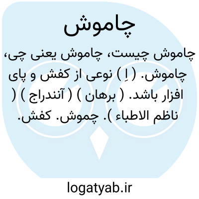 لغت نامه دهخدا چاموش. ( اِ ) نوعی از کفش و پای افزار باشد. ( برهان ) ( آنندراج ) ( ناظم الاطباء ). چموش. کفش. پاپوش. پوزار. نوعی کفش روستایی. و رجوع به کفش شود.