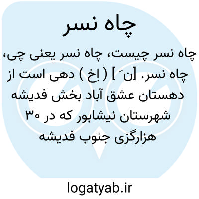 چاه نسر. [ن َ ] ( اِخ ) دهی است از دهستان عشق آباد بخش فدیشه شهرستان نیشابور که در 30 هزارگزی جنوب فدیشه واقع شده. جلگه و معتدل است و 277 تن سکنه دارد. آبش از قنات. محصولش غلات و تریاک، شغل اهالی زراعت و مالداری وراهش مالرو است. ( از فرهنگ جغرافیایی ایران ج 9 ).