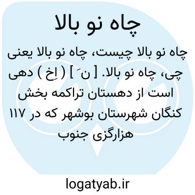 چاه نو بالا. [ ن َ ] ( اِخ ) دهی است از دهستان تراکمه بخش کنگان شهرستان بوشهر که در 117 هزارگزی جنوب خاور کنگان و2 هزارگزی شمال راه فرعی لار به گله دار واقع شده. جلگه، گرمسیر و مالاریائی است و 77 تن سکنه دارد. آبش از قنات، محصولش غلات، انار و پیاز، شغل اهالی زراعت وراهش مالرو است. ( از فرهنگ جغرافیایی ایران ج 7 ).