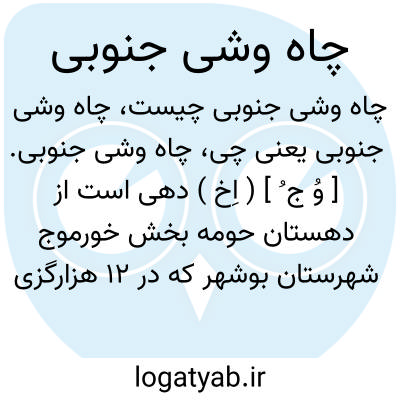 چاه وشی جنوبی. [ وُ ج ُ ] ( اِخ ) دهی است از دهستان حومه بخش خورموج شهرستان بوشهر که در 12 هزارگزی باختر خورموج، در خاور کوه مند واقع شده. جلگه، گرمسیر و مالاریائی است و 60 تن سکنه دارد.آبش از چاه، محصولش غلات و تنباکو، شغل اهالی زراعت و راهش فرعی است. ( از فرهنگ جغرافیایی ایران ج 7 ).