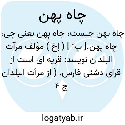 چاه پهن.[ پ َ ] ( اِخ ) مؤلف مرآت البلدان نویسد: قریه ای است از قرای دشتی فارس. ( از مرآت البلدان ج 4 ص 132 ).
