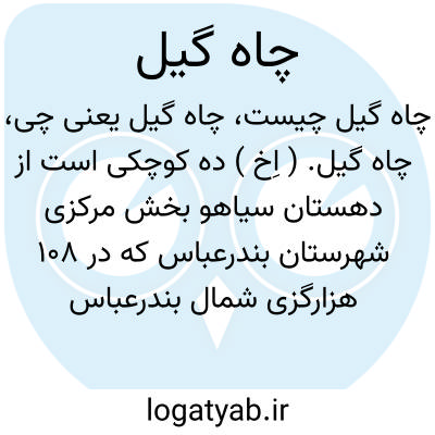 چاه گیل. ( اِخ ) ده کوچکی است از دهستان سیاهو بخش مرکزی شهرستان بندرعباس که در 108 هزارگزی شمال بندرعباس و 4 هزارگزی شمال راه شوسه کرمان به بندرعباس واقع شده و15 تن سکنه دارد. ( از فرهنگ جغرافیای ایران ج 8 ).