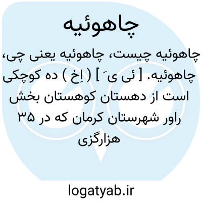 چاهوئیه. [ ئی ی َ ] ( اِخ ) ده کوچکی است از دهستان کوهستان بخش راور شهرستان کرمان که در 35 هزارگزی شمال باختری راور و 4 هزارگزی جنوب راه فرعی کوهستان به راور واقع شده و 20 خانوار سکنه دارد. ( از فرهنگ جغرافیایی ایران ج 8 ).