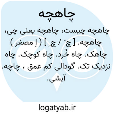 چاهچه. [ چ َ / چ ِ ] ( اِ مصغر ) چاهک. چاه خُرد. چاه کوچک. چاه نزدیک تک. گودالی کم عمق، چاچه. آبشی. چاهی که در صحن سرای کنند رفع حوائج کودکان و گرد آمدن فاضلاب را. رجوع به آبشی در همین لغت نامه شود.