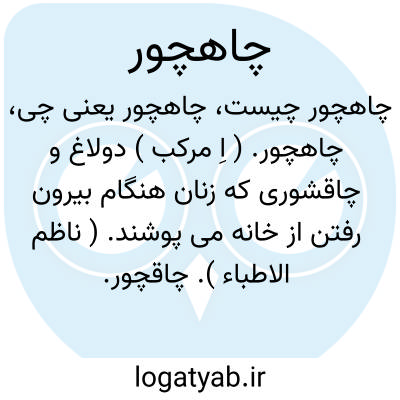 لغت نامه دهخدا چاهچور. ( اِ مرکب ) دولاغ و چاقشوری که زنان هنگام بیرون رفتن از خانه می پوشند. ( ناظم الاطباء ). چاقچور.