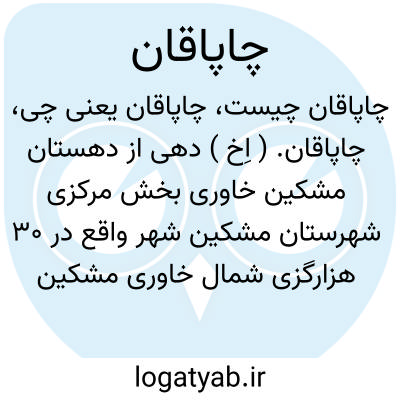 چاپاقان. ( اِخ ) دهی از دهستان مشکین خاوری بخش مرکزی شهرستان مشکین شهر واقع در 30 هزارگزی شمال خاوری مشکین شهر و 6 هزارگزی شوسه مشکین شهر به اردبیل. جلگه، معتدل با 631 تن سکنه. آب آن از رود قره سو، محصول آنجا غلات و حبوبات و پنبه. و برنج و انگور. شغل اهالی زراعت و گله داری. راه آن مالرو است. ( فرهنگ جغرافیائی ایران ج 4 ).
