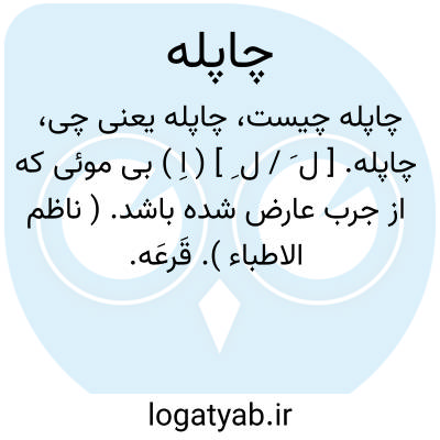 لغت نامه دهخدا چاپله. [ ل َ / ل ِ ] ( اِ ) بی موئی که از جرب عارض شده باشد. ( ناظم الاطباء ). قَرعَه.