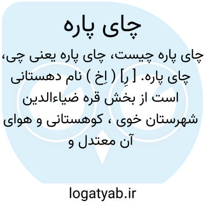 چای پاره. [ رِ] ( اِخ ) نام دهستانی است از بخش قره ضیاءالدین شهرستان خوی، کوهستانی و هوای آن معتدل و مالاریائی است. رودخانه مهم این دهستان عبارت از رود آق چای است که از کوههای مرزی ایران و ترکیه سرچشمه گرفته پس از عبور از دهستان الندوسکمن آباد داخل این دهستان میشود و پس از مشروب نمودن زمین های زراعتی در قریه مراکند به قطورچای ملحق شده سپس به رودخانه ارس می ریزد. قنوات و چشمه سارهای گوارا در این دهستان وجود دارد که بمصرف آشامیدن و زراعت میرسد. از 56 آبادی بزرگ و کوچک تشکیل شده که در حدود 16355 تن سکنه دارد. شغل عمده اهالی این منطقه کشاورزی و نگاه داری اغنام و احشام است. قراء مهم آن عبارت است از قره ضیاالدین ( مرکز بخش دهستان ) چورس، زنگلان پائین، حاجی لر، مراکند، نعلبند و بسطام. محصولات و صادرات عمده دهستان: غلات، حبوبات، روغن و پشم است. راه شوسه خوی - ماکو از این دهستان عبور میکند و بقرائی که در مسیر شوسه مزبور واقعند میتوان در تمام فصول اتومبیل برد و اکثر راههای دهات دیگر ارابه روند که در فصل تابستان با مختصر تعمیر میتوان مورد استفاده قرار داده و مابقی راههای قراء مالرو است. ( از فرهنگ جغرافیایی ایران، ج 4 ).