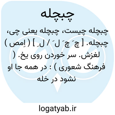 چبچله. [ چ َ چ َ ل َ / ل ِ ] ( اِمص ) لغزش. سر خوردن روی یخ. ( فرهنگ شعوری ):