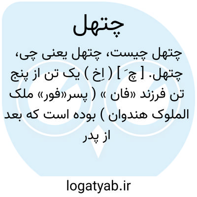 چتهل. [ چ َ ] ( اِخ ) یک تن از پنج تن فرزند «فان » ( پسر«فور» ملک الملوک هندوان ) بوده است که بعد از پدر بپادشاهی هند رسید. رجوع شود به مجمل التواریخ و القصص صص 110 - 115.