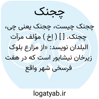 چجنک. [ ] ( اِخ ) مؤلف مرآت البلدان نویسد: «از مزارع بلوک زیرخان نیشابور است که در هفت فرسخی شهر واقع شده و زراعتش از آب رودخانه مشروب میشود. هوایش در زمستان سرد و در تابستان معتدل است. این مزرعه خالی از سکنه است و اهالی قرای اطراف که مالک این مزرعه اند در اینجا زراعت میکنند». ( از مرآت البلدان ج 4 ص 214 ).