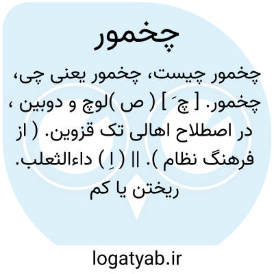 چخمور. [ چ َ ] ( ص )لوچ و دوبین، در اصطلاح اهالی تک قزوین. ( از فرهنگ نظام ). || ( اِ ) داءالثعلب. ریختن یا کم شدن موی سر و ابرو و غیره.