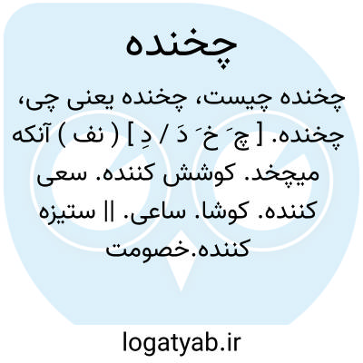 چخنده. [ چ َ خ َ دَ / دِ ] ( نف ) آنکه میچخد. کوشش کننده. سعی کننده. کوشا. ساعی. || ستیزه کننده.خصومت گر. دشمنی کننده. ستیزه جو. ستیزه گر. || آنکه بر روی کسی جستن کند. جستن کننده بر روی دیگری. || دم زننده. رجوع به چخ و چخیدن شود.