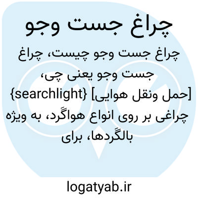 {searchlight} [حمل ونقل هوایی] چراغی بر روی انواع هواگَرد، به ویژه بالگَردها، برای شناسایی عوارض جوّی و موانع احتمالی