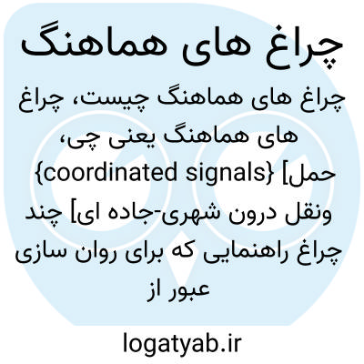 {coordinated signals} [حمل ونقل درون شهری-جاده ای] چند چراغ راهنمایی که برای روان سازی عبور از تقاطع های متوالی با یکدیگر هماهنگ شوند