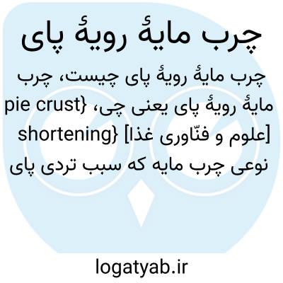 فرهنگستان زبان و ادب {pie crust shortening} [علوم و فنّاوری غذا] نوعی چرب مایه که سبب تردی پای می شود بی آنکه بر خاصیت جذب آب آرد تأثیر بگذارد