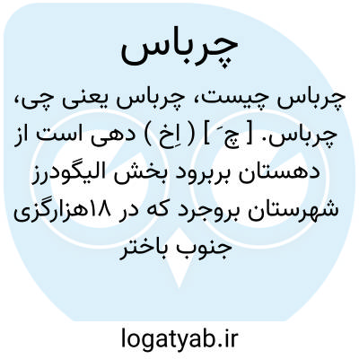 چرباس. [ چ َ ] ( اِخ ) دهی است از دهستان بربرود بخش الیگودرز شهرستان بروجرد که در 18هزارگزی جنوب باختر الیگودرز و یک هزارگزی شمال راه مالرو انوج به خونسرخ واقع شده. جلگه و معتدل است و424 تن سکنه دارد. آبش از قنات محصولش غلات و لبنیات، شغل اهالی زراعت و گله داری، صنایع دستی قالی بافی وراهش مالرو است. ( از فرهنگ جغرافیایی ایران ج 6 ).