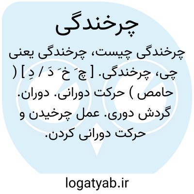چرخندگی. [ چ َ خ َ دَ / دِ ] ( حامص ) حرکت دورانی. دوران. گردش دوری. عمل چرخیدن و حرکت دورانی کردن. گردندگی. رجوع به چرخ و چرخنده شود.