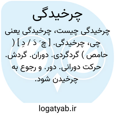 لغت نامه دهخدا چرخیدگی. [ چ َ دَ / دِ ] ( حامص ) گردگردی. دوران. گردش. حرکت دورانی. دور. و رجوع به چرخیدن شود.