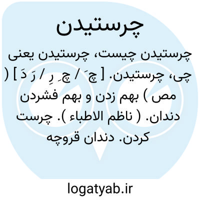 چرستیدن. [ چ َ / چ ِ رِ / رَ دَ ] ( مص ) بهم زدن و بهم فشردن دندان. ( ناظم الاطباء ). چرست کردن. دندان قروچه کردن. رجوع به چرست و چرست کردن شود.