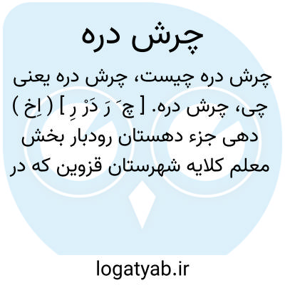 چرش دره. [ چ َ رَ دَرْ رِ ] ( اِخ ) دهی جزء دهستان رودبار بخش معلم کلایه شهرستان قزوین که در 28هزارگزی باختر معلم کلایه واقعست. کوهستانی و سردسیر است و 85 تن سکنه دارد. آبش از رودخانه شاهرود و قنات، محصولش غلات، برنج و صیفی، شغل اهالی زراعت وراهش مالرو است. ( از فرهنگ جغرافیایی ایران ج 1 ).