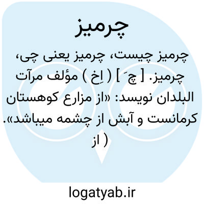 چرمیز. [ چ َ ] ( اِخ ) مؤلف مرآت البلدان نویسد: «از مزارع کوهستان کرمانست و آبش از چشمه میباشد». ( از مرآت البلدان ج 4 ص 222 ). ده کوچکی است از دهستان کوهستان بخش راور شهرستان کرمان که در 76هزارگزی شمال باختری راور و 17هزارگزی شمال راه فرعی راور واقع است و 25 تن سکنه دارد. ( از فرهنگ جغرافیایی ایران ج 8 ).