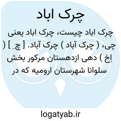 ( چرک آباد ) چرک آباد. [ چ ِ ] ( اِخ ) دهی ازدهستان مرکور بخش سلوانا شهرستان ارومیه که در 31هزارگزی جنوب خاوری سلوانا و 4هزارگزی جنوب ارابه رو دیزج بزیوه واقعست. دره و سردسیر است و 160 تن سکنه دارد. آبش از کوهستان و چشمه، محصولش غلات، حبوبات و توتون،شغل اهالی زراعت و گله داری، صنایع دستی جاجیم بافی وراهش مالرو است. ( از فرهنگ جغرافیایی ایران ج 4 ).