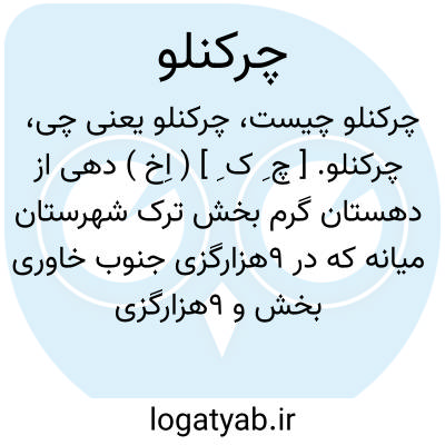 چرکنلو. [ چ ِ ک ِ ] ( اِخ ) دهی از دهستان گرم بخش ترک شهرستان میانه که در 9هزارگزی جنوب خاوری بخش و 9هزارگزی شوسه میانه بخلخال واقع است. کوهستانی و معتدل است و 414 تن سکنه دارد. آبش از چشمه رودگرم، محصولش غلات، عدس و نخود، شغل اهالی زراعت و گله داری وراهش مالرو است. ( از فرهنگ جغرافیایی ایران ج 4 ).