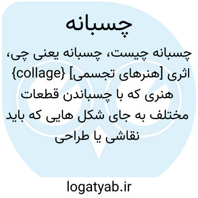 {collage} [هنرهای تجسمی] اثری هنری که با چسباندن قطعات مختلف به جای شکل هایی که باید نقاشی یا طراحی شوند، به وجود می آید