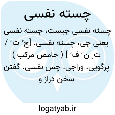 چسته نفسی. [چ ُ ت َ / ت ِ ن َ ف َ ] ( حامص مرکب ) پرگویی. وراجی. چس نفسی. گفتن سخن دراز و بیهوده. رجوع به چس نفسی شود.