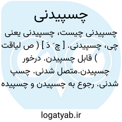 چسپیدنی. [ چ َ دَ ] ( ص لیاقت ) قابل چسپیدن. درخور چسپیدن.متصل شدنی. چسپ شدنی. رجوع به چسپیدن و چسپیده شود.