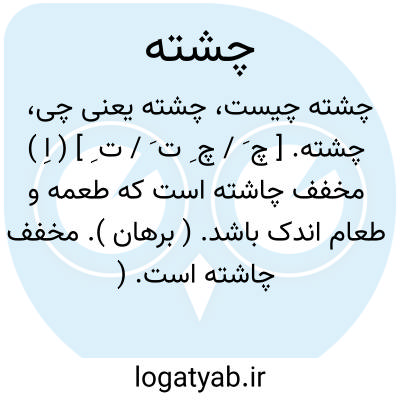 چشته. [ چ َ / چ ِ ت َ / ت ِ ] ( اِ ) مخفف چاشته است که طعمه و طعام اندک باشد. ( برهان ). مخفف چاشته است. ( انجمن آرا ). بمعنی طعام چاشت باشد و بعد از آن تخفیف نموده بمعنی مأخوذ استعمال کرده باشند. ( آنندراج ). طعام اندک و طعمه و چاشت. ( ناظم الاطباء ). غذایی که به حیوانات به خصوص درندگان میدهند، که درتکلم طعمه است. ( فرهنگ نظام ). طعمه. نواله: و چون سلیمان به اسد رسید مصاف داده همی آمدند تا بساری دیالم و سادات چون شیر که به چشته رود پیشباز شدند و بسیاری را کشته و هزیمت کرده... ( تاریخ طبرستان ). رجوع به چشته خوار و چشته خور شود. || چاشنی و مزه. ( ناظم الاطباء ). || مسته. کریز. کمی از گوشت که بمرغان شکاری دهند تا آنانرا حریص بشکار کنند. گوشتی از صید باز که خود باز را دهند. || گوشت یا چربی یا خوردنی دیگری که بقلاب ماهیگیری بندند تا ماهی را بدان وسیله صید کنند. فریه. || تخم مرغی که در لانه مرغ یا جای دیگر میگذارند که مرغ همواره بدانجا رفته تخم بگذارد. رومَه. ( در اصطلاح اهالی فیض آباد محولات بخش تربت حیدریه ). || آنکه معاش خود را بدون زحمت تحصیل میکند. ( ناظم الاطباء ). چشته خور. چشته خوار.