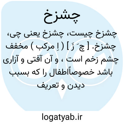 چشزخ. [ چ َ زَ ] ( اِ مرکب ) مخفف چشم زخم است، و آن آفتی و آزاری باشد خصوصاًاطفال را که بسبب دیدن و تعریف کردن بعضی از مردم بهم میرسد. ( برهان ). مرخم چشم زخم است. ( انجمن آرا ) ( آنندراج ). چشم زخم. ( ناظم الاطباء ). مخفف چشم زخم است. ( فرهنگ نظام ). چشمزخ. چشم بد. نظرخوردگی: