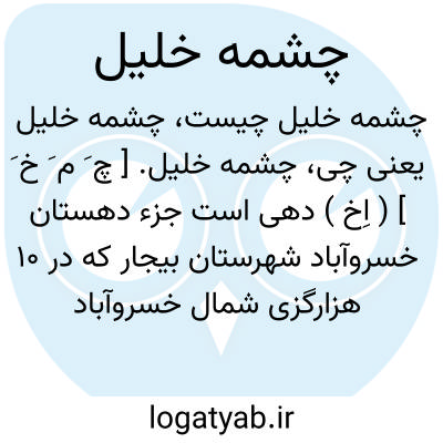 چشمه خلیل. [ چ َ م َ خ َ ] ( اِخ ) دهی است جزء دهستان خسروآباد شهرستان بیجار که در 10 هزارگزی شمال خسروآباد کنار راه مالرو خسروآباد به بیجار واقع است. تپه ماهوری است با هوای سردسیر و 430تن سکنه دارد. آبش از چشمه. محصولش غلات و لبنیات. شغل اهالی زراعت، گله داری بافتن قالیچه، جاجیم و گلیم و راهش مالرو است. خط تلگراف و تلفن بیجار به خسروآباد نیز از کنار این آبادی میگذرد. ( از فرهنگ جغرافیایی ایران ج 5 ).