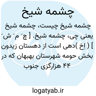 چشمه شیخ. [ چ َ م َ ش َ ] ( اِخ )دهی است از دهستان زیدون بخش حومه شهرستان بهبهان که در 44 هزارگزی جنوب باختری بهبهان و 6 هزارگزی باختر راه شوسه آغاجاری به بهبهان واقع است. دشت و گرمسیر است و 211 تن سکنه دارد. آبش از چشمه شیخ، محصولش غلات، پشم و لبنیّات، شغل اهالی زراعت و حشم داری وراهش مالرو است. ( از فرهنگ جغرافیائی ایران ج 6 ).