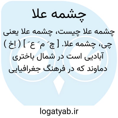 چشمه علا. [ چ َ م َ ع َ ] ( اِخ ) آبادیی است در شمال باختری دماوند که در فرهنگ جغرافیایی بنام «چشمه اعلا» ثبت شده، لیکن در تداول عامه، «چشمه علا» معروف است و چشمه ای نیز بدین نام دارد. و رجوع به چشمه علا شود.