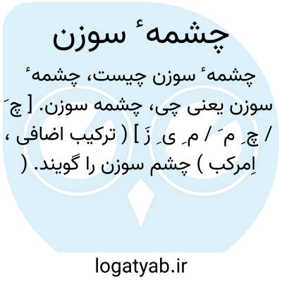 چشمه سوزن. [ چ َ / چ ِ م َ / م ِ ی ِ زَ ] ( ترکیب اضافی، اِمرکب ) چشم سوزن را گویند. ( انجمن آرا ). کنایه از سوراخ سوزن است. ( آنندراج ). سَم ُ الخِیاط: