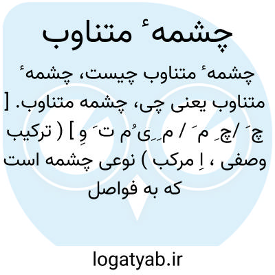 چشمه متناوب. [ چ َ /چ ِ م َ / م ِ ِی ُم ت َ وِ ] ( ترکیب وصفی، اِ مرکب ) نوعی چشمه است که به فواصل معلوم بنوبت آب از آن جاری شود و هم در ازم-نه معلوم خشک و بی آب ماند. و رجوع به چشمه وقت و ساعت شود.