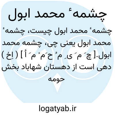 چشمه محمد ابول.[ چ َ م َ ی ِ م ُ ح َم ْ م َ اُ ] ( اِخ ) دهی است از دهستان شهاباد بخش حومه شهرستان بیرجند که در 24 هزارگزی جنوب خاوری بیرجند واقع است. کوهستانی و معتدل است و 5 تن سکنه دارد. ( از فرهنگ جغرافیایی ایران ج 9 ).