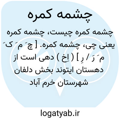 چشمه کمره. [ چ َ م َ ک َ م َ رَ / رِ ] ( اِخ ) دهی است از دهستان ایتوند بخش دلفان شهرستان خرم آباد که در 24 هزارگزی شمال خاوری نورآباد و 12 هزارگزی باختر راه شوسه خرم آبادبه کرمانشاه واقع است. جلگه و سردسیر است و 60 تن سکنه دارد. آبش از چشمه، محصولش غلات و لبنیات، شغل اهالی زراعت و گله داری، صنایع دستی زنان سیاه چادربافی و راهش مالرو است. ساکنین این آبادی از طایفه رایتوند بوده برای تعلیف احشام به قشلاق میروند و در سیاه چادر سکونت دارند. ( از فرهنگ جغرافیایی ایران ج 6 ).