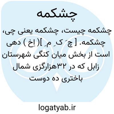 چشکمه. [ چ َ ک ِ م ِ ]( اِخ ) دهی است از بخش میان کنگی شهرستان زابل که در 32هزارگزی شمال باختری ده دوست محمد و 20هزارگزی شمال راه مالرو ده دوست محمد به زابل واقع است. جلگه و گرمسیر است و 300 تن سکنه دارد. آبش از رودخانه هیرمند، محصولش غلات و لبنیات شغل اهالی زراعت و گله داری وراهش مالرو است. ( از فرهنگ جغرافیایی ایران ج 8 ).