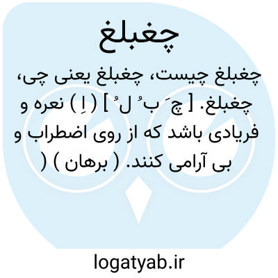 چغبلغ. [ چ َ ب ُ ل ُ ] ( اِ ) نعره و فریادی باشد که از روی اضطراب و بی آرامی کنند. ( برهان ) ( آنندراج ) ( جهانگیری ) ( ناظم الاطباء ).