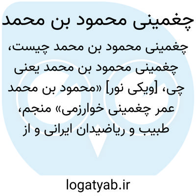 [ویکی نور] «محمود بن محمد عمر چغمینی خوارزمی» منجم، طبیب و ریاضیدان ایرانی و از اهالی چغمین (شهر کوچکی در خوارزم) بود.
