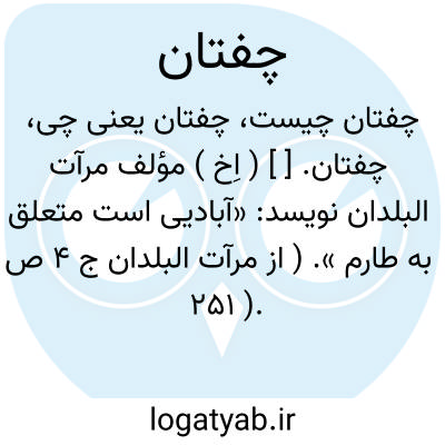 چفتان. [ ] ( اِخ ) مؤلف مرآت البلدان نویسد: «آبادیی است متعلق به طارم ». ( از مرآت البلدان ج 4 ص 251 ).