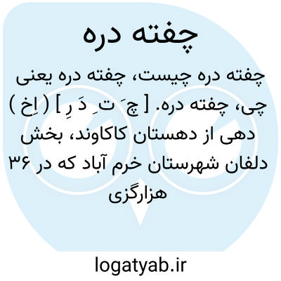 چفته دره. [ چ َ ت ِ دَ رِ ] ( اِخ ) دهی از دهستان کاکاوند، بخش دلفان شهرستان خرم آباد که در 36 هزارگزی شمال باختری نورآباد و 6 هزارگزی باختر راه شوسه خرم آباد به کرمانشاه واقع است. تپه ماهوری و سردسیر است و 120 تن سکنه دارد. آبش از چشمه. محصولش غلات، لبنیات و پشم. شغل اهالی زراعت و گله داری و راهش مالرو است. ساکنین این آبادی از طایفه غیب غلام میباشند که در ساختمان و سیاه چادر زندگی میکنند. ( از فرهنگ جغرافیایی ایران ج 6 ).