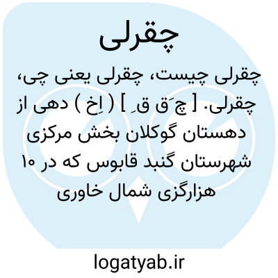 چقرلی. [ چ َق ق ِ ] ( اِخ ) دهی از دهستان گوکلان بخش مرکزی شهرستان گنبد قابوس که در 10 هزارگزی شمال خاوری کلاله واقعاست. کوهستانی و دارای جنگل است و 400 تن سکنه دارد. آبش از رودخانه یکه قوزه، محصولش برنج، غلات، لبنیات، عسل، حبوبات و صیفی. شغل اهالی زراعت و گله داری وراهش مالرو است. ( از فرهنگ جغرافیایی ایران ج 3 ).