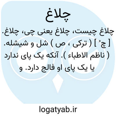 چلاغ. [ چ ُ ] ( ترکی، ص ) شل و شیشله. ( ناظم الاطباء ). آنکه یک پای ندارد یا یک پای او فالج دارد. و رجوع به چلاق شود. || آنکه دست ندارد یا یک دست وی خشکیده و فالج شده است. و رجوع به چلاق شود.